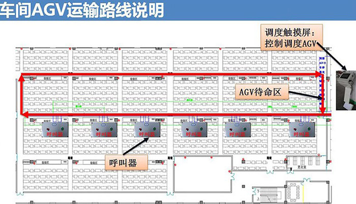 3.AGV待命區放置一個發料終端(7寸觸摸屏),用來顯示呼叫信息及調度AGV。